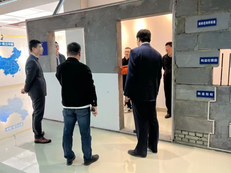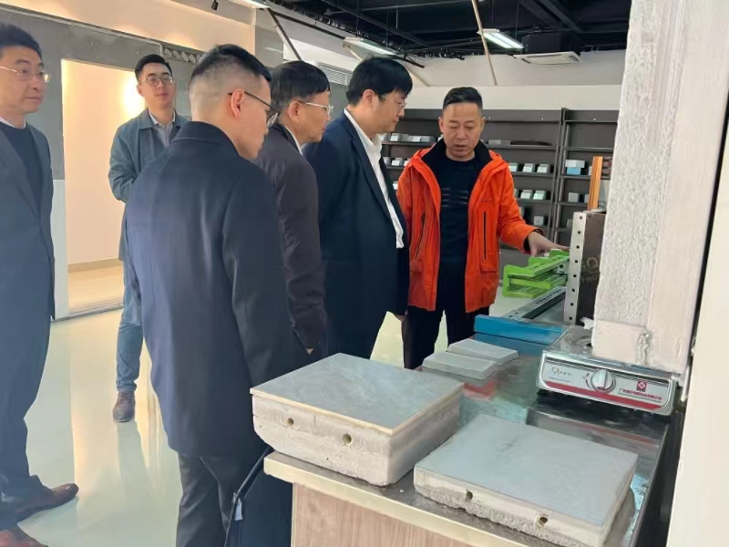 隨后,吳總、沈總在公司領導陪同下到項目施工現場進行實地考察。吳總對成型墻體的質量、性能以及干凈整潔的施工現場贊嘆不已。他表示,中邦科技現澆輕質泡沫混凝土隔墻技術產品符合國家目前著重強調的“推進綠色發展,推進降碳、綠色低碳發展,發展綠色低碳產業,早日達成雙碳”的理念。
