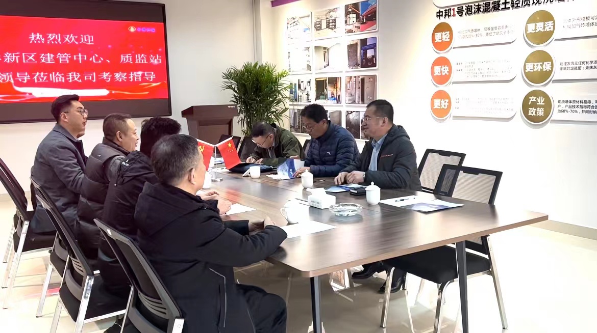 2023年2月13日,西海岸新區(qū)住建局建管中心、質(zhì)監(jiān)站:張主任、劉總工、劉站長、王站長、李科長一行到青島中邦新材料科技有限公司考察指導(dǎo),中邦公司總經(jīng)理史云強(qiáng)帶領(lǐng)市場管理團(tuán)隊(duì)進(jìn)行了陪同和匯報(bào)。