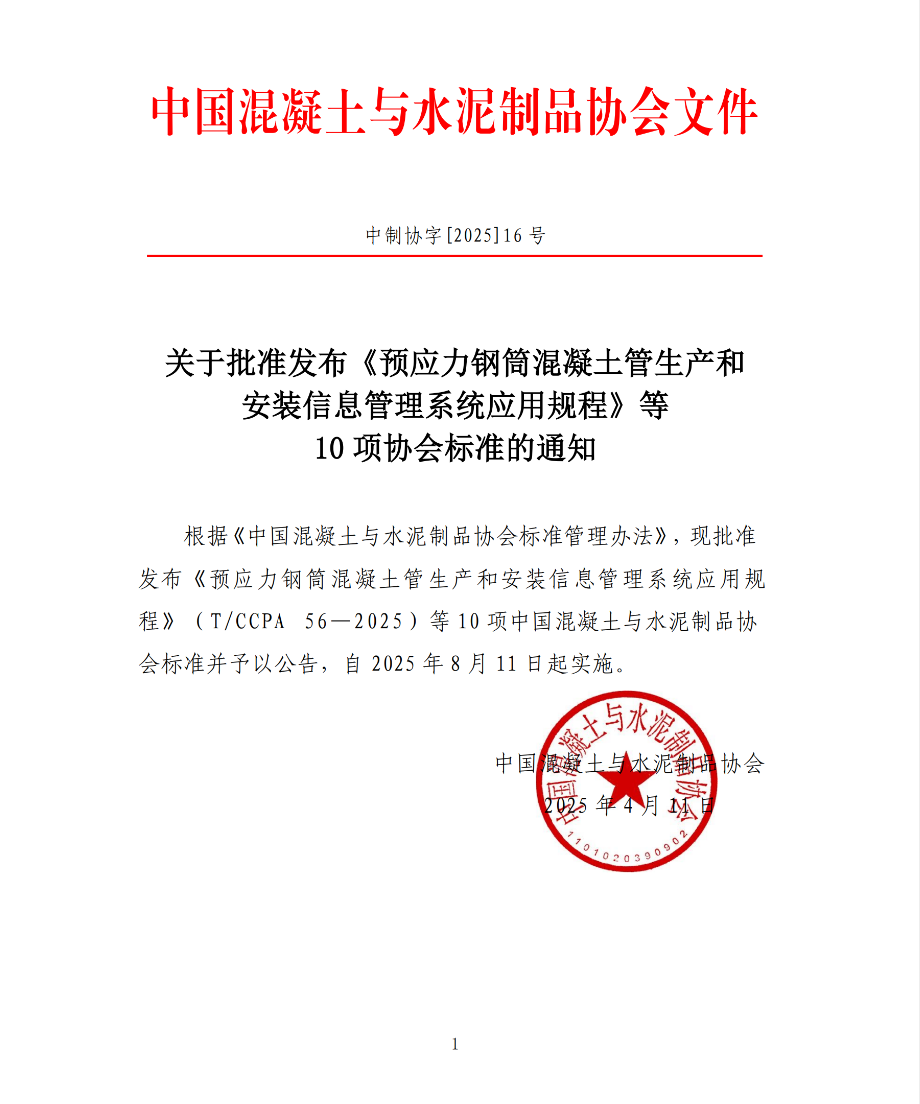 中國混凝土與水泥制品協(xié)會表示,此次發(fā)布的10項標(biāo)準均聚焦行業(yè)前沿技術(shù),將于2025年8月11日起正式實施。協(xié)會希望通過標(biāo)準的推廣,推動混凝土與水泥制品行業(yè)的高質(zhì)量發(fā)展。